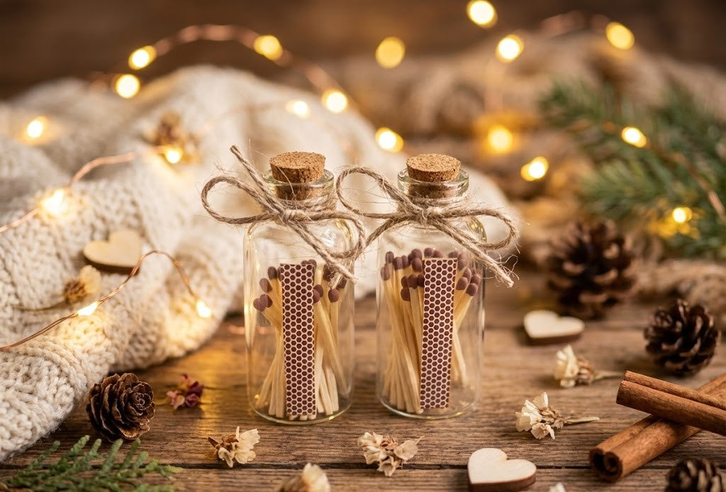 Botecito de cerillas artesanales con rascador en la etiqueta. ✨