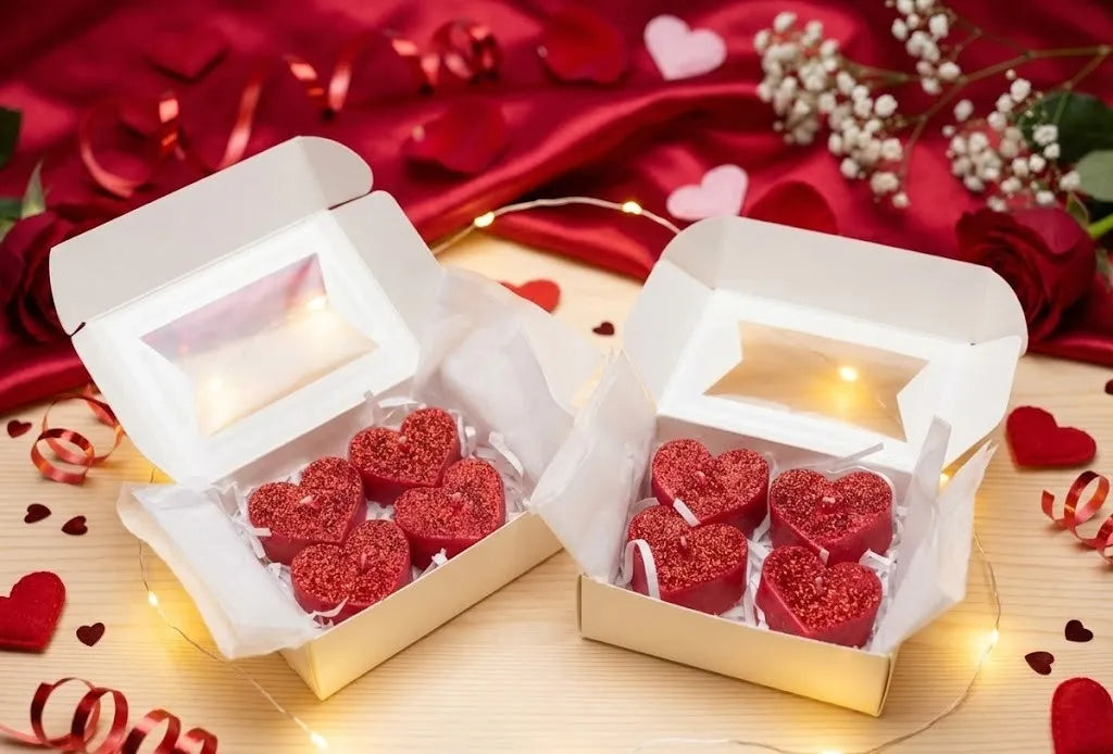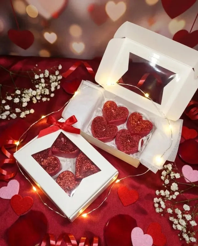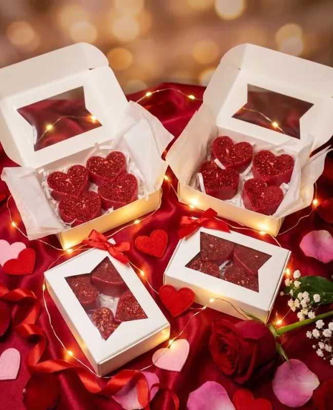 2. Diseño que brilla con luz propia: ✨ Cada corazón es único. Su intenso color rojo pasión está coronado con un sutil acabado de glitter (brillantina) que, al fundirse con el calor, crea un efecto visual mágico y centelleante en la cera líquida. ¡Un espectáculo visual hipnótico!