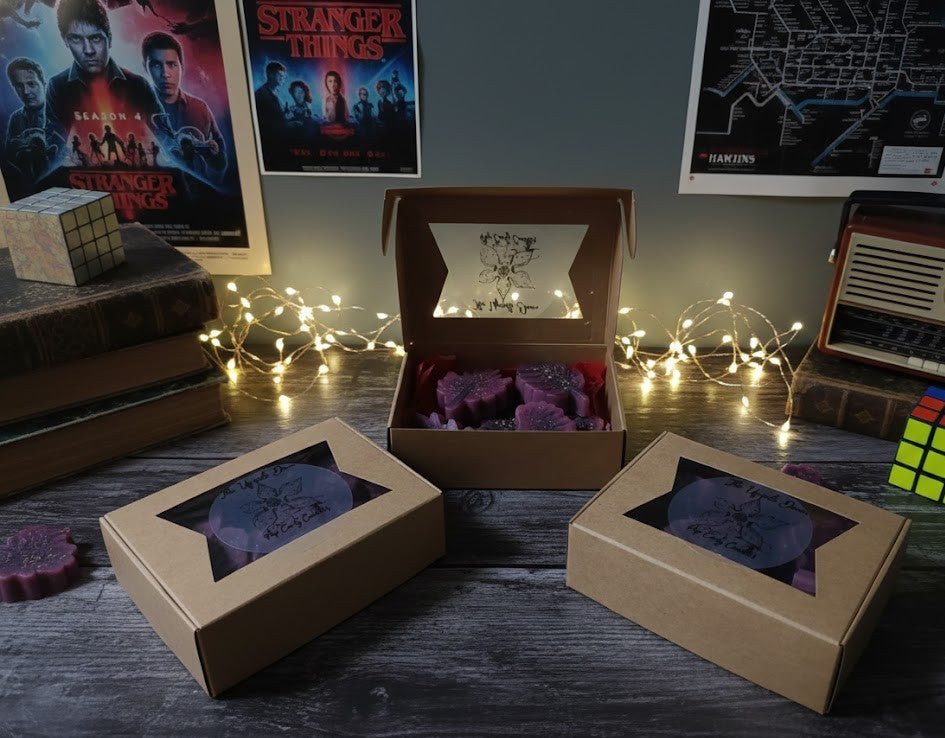 Estos waxmelts no son solo fragancia; son una puerta sensorial al escalofriante y fascinante Mundo del Revés de Stranger Things. Hemos capturado la esencia de lo que encontrarías en el Upside Down... si no fuera tan peligroso.